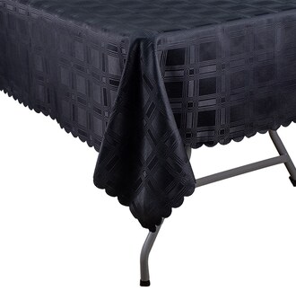 Bring a bold and modern touch to your event with our premium rectangular patterned table linen. This high-quality black or white tablecloth features a contemporary geometric check weave that adds architectural depth and a subtle sheen to your banquet setup. Designed for both style and durability, it features a decorative scalloped edge that provides a refined finish to the drape.